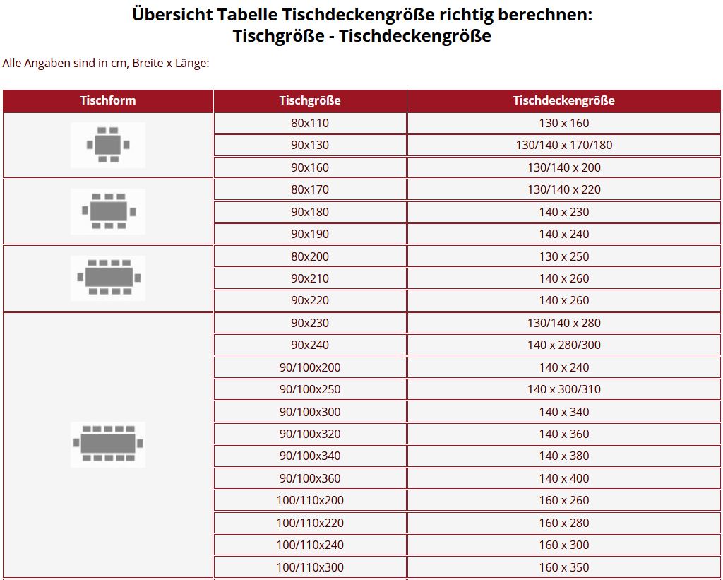 Hinweis: Die Damast-Tischdecke ist einige Zentimeter größer als angegeben, somit ist der Einlauf durch die Wäsche bereits einkalkuliert!