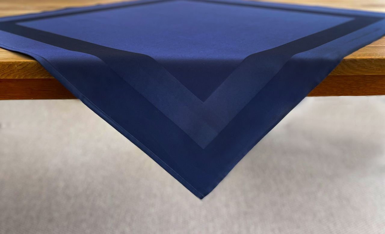 Produktinformationen "Mitteldecke Padua, marine-dunkelblau, mit Atlaskante, 80x80"