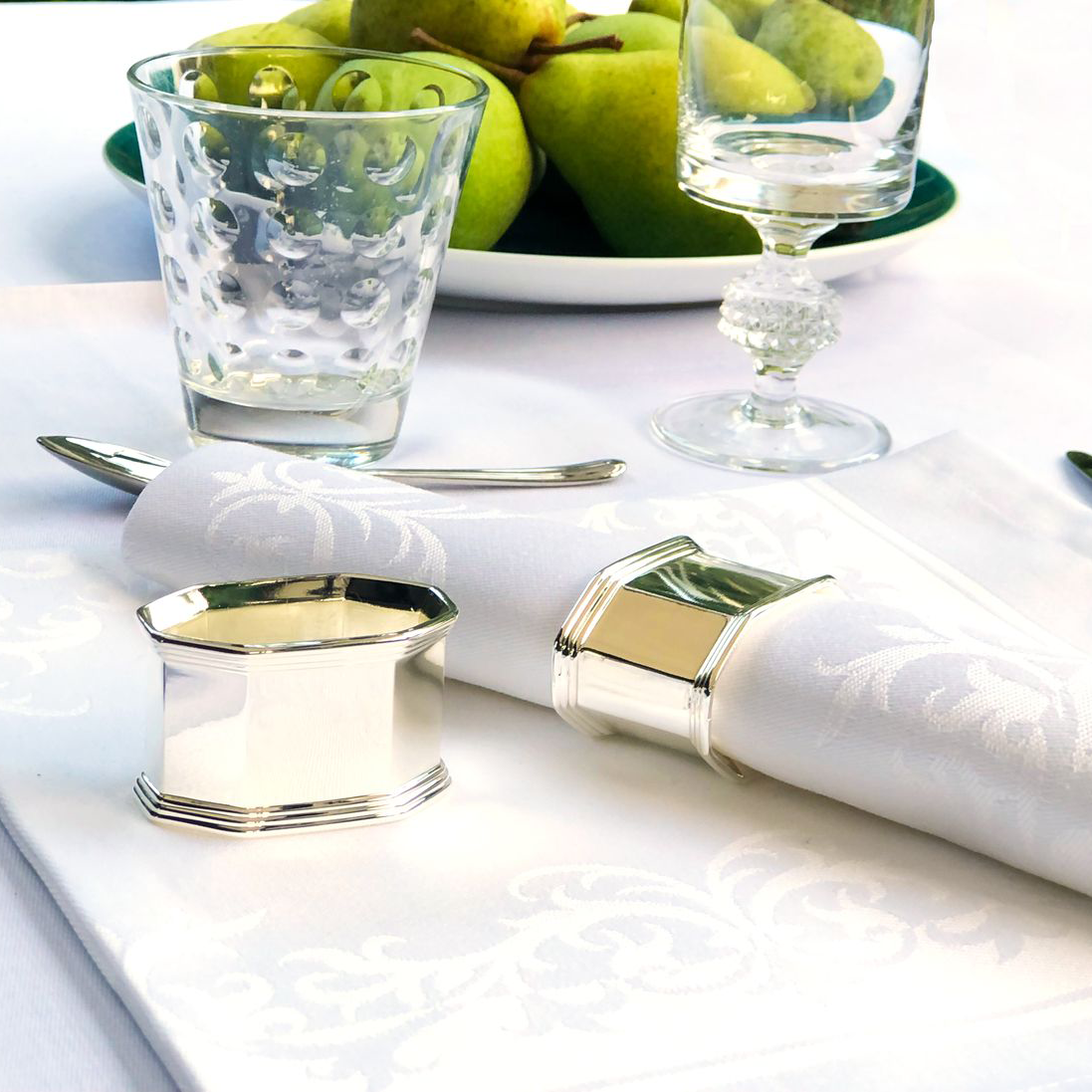 Wir empfehlen zu den Serviettenringen Luisa unsere Damast-Servietten "Konstanze"; auch als Geschenk ist diese Kombination eine gute Idee!
